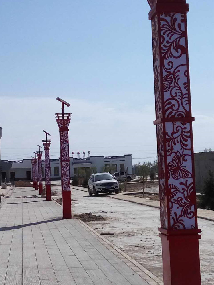 簡介—— 蘭光照明甘肅武威太陽能景觀燈工程 ,主要采購我公司自主生產(chǎn)的造型景觀燈,燈體主體為中國紅,配有植物圖案,配合白色亞克力板,使得圖案更具有立體感覺。太陽能板采用的單晶板,配合高效膠體電池,增加使用壽命。