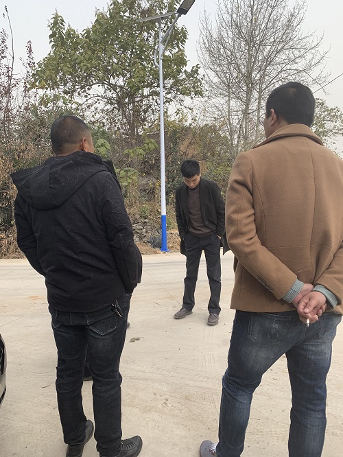 簡介—— 陜西藍田縣熨斗村鄉村道路太陽能路燈安裝效果圖一陜西藍田縣熨斗村鄉村道路太陽能路燈安裝效果圖二陜西蘭光照明工作人員現場勘查項目實施地基本情況