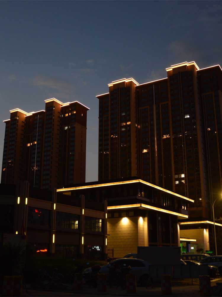 2020年陜西渭南上上地產上上國風亮化工程項目,是我們陜西蘭光戶外照明有限公司與上上地產在渭南地區的合作項目,項目地點位于勝利大街,屬于住宅性質的樓體,本項目已常規地產亮化方式進行夜景照明,主要是以勾勒樓頂天際線為主簡約而美觀。